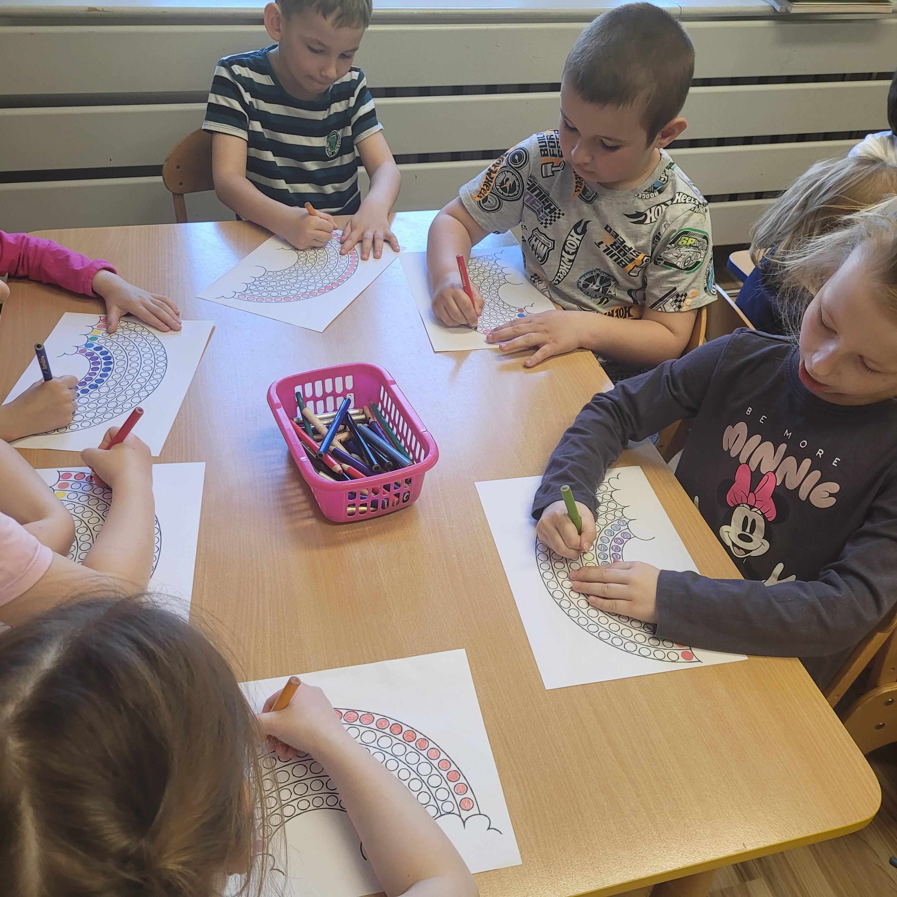 W dniu 2 kwietnia przedszkolaki obchodziły Dzień Tęczy. Jak każdy wie tęcza to wyjątkowe zjawisko optyczne i meteorologiczne. Nie ważne w jakim wieku jesteśmy każdego zachwyca tak samo. Podczas zajęć dzieci dowiedziały się jak powstaje tęcza, jakie zjawiska pogodowe są potrzebne do tego by tęcza ubarwiła nam niebo. Każdy przypomniał sobie jakie kolory posiada tęcza oraz przeliczał ile ich jest. Przedszkolaki również z wielkim zaangażowaniem wykonywały prace plastyczne, które ubarwiły nam naszą przedszkolną szatnie. Na zakończenie dnia przedszkolaki bawiły się w zabawy ruchowe, które odnosiły się do dnia tematycznego. Cały dzień przebieg w wielkiej radości, a uśmiech pojawiał się na każdej buzi.