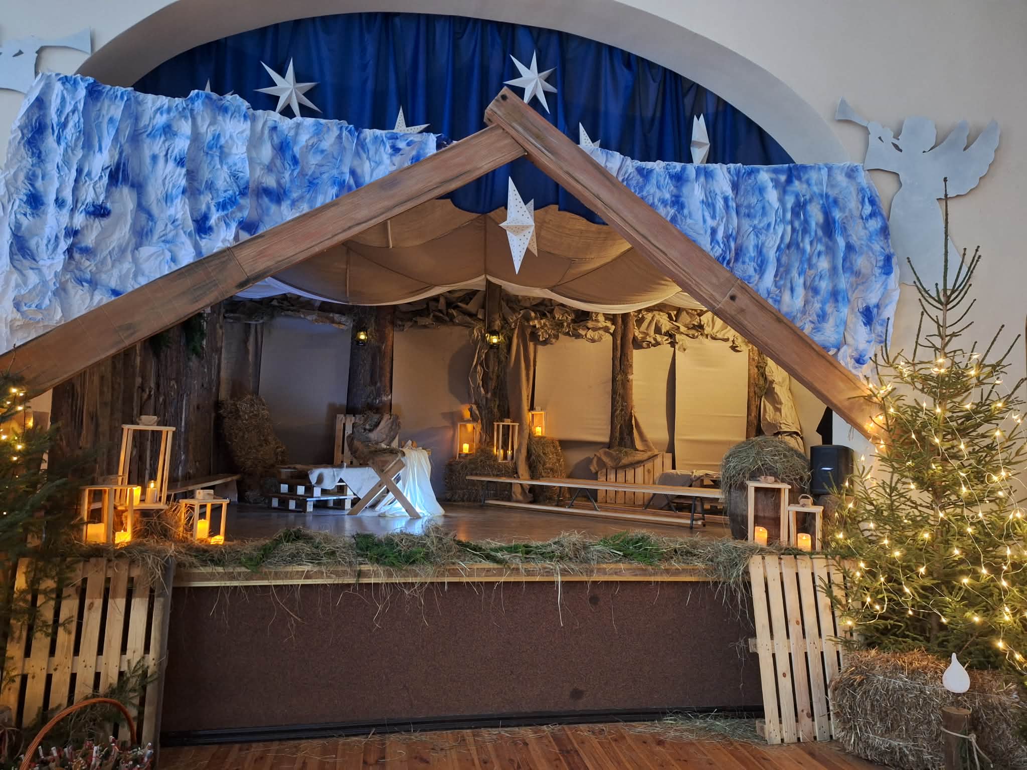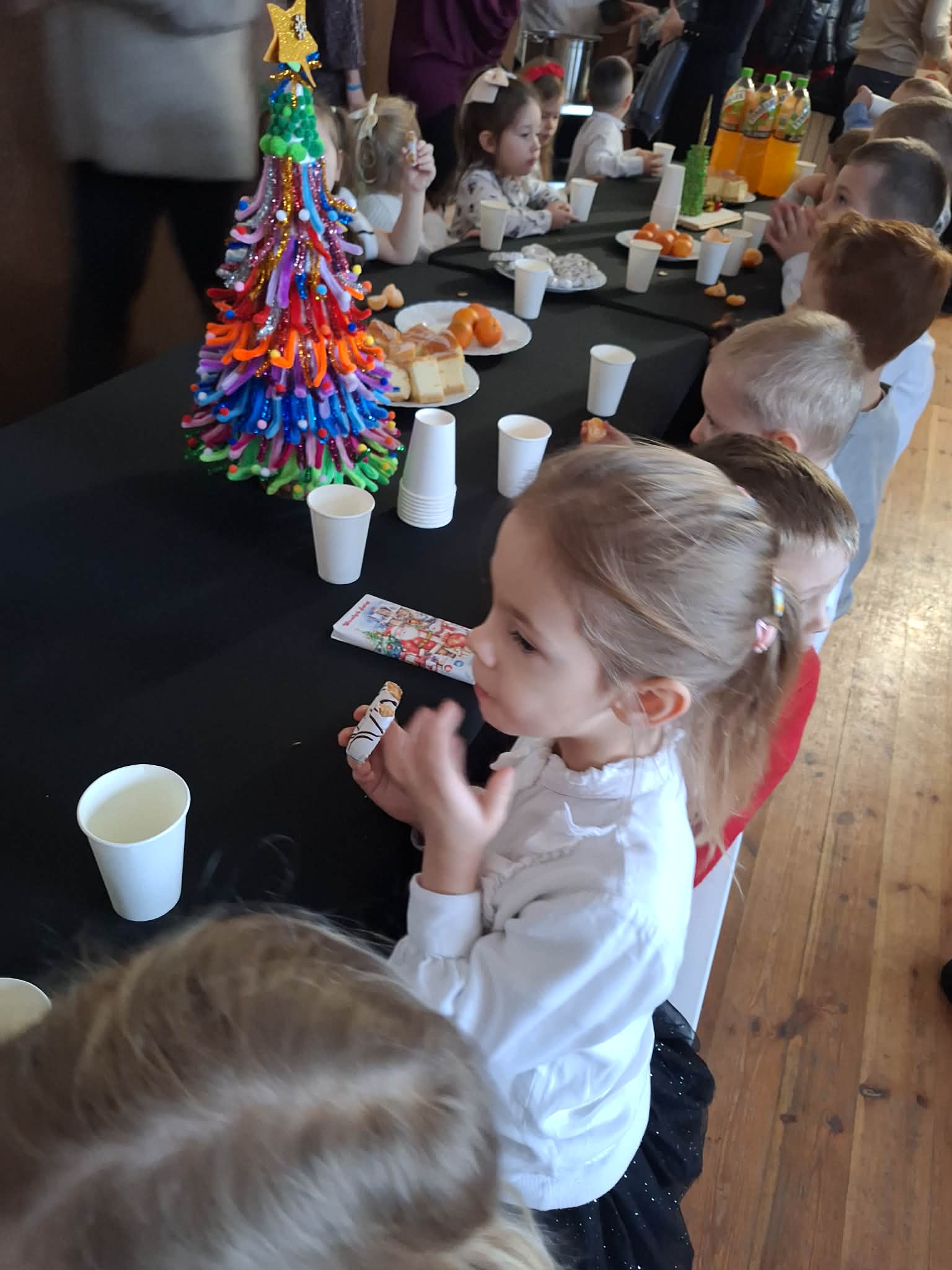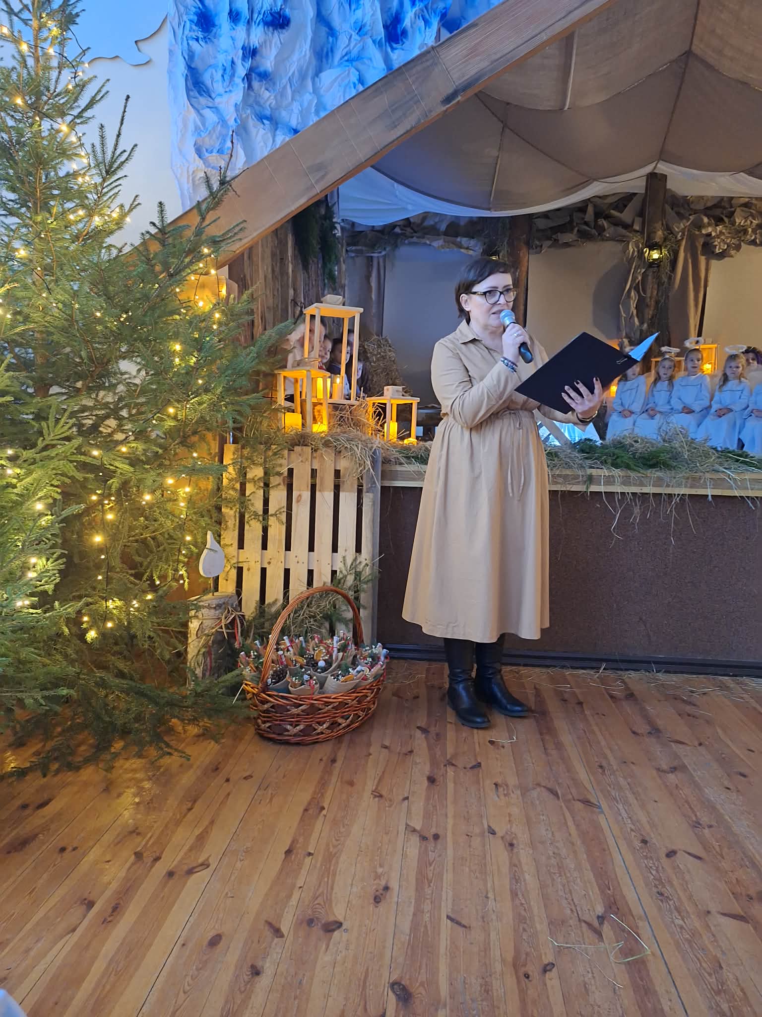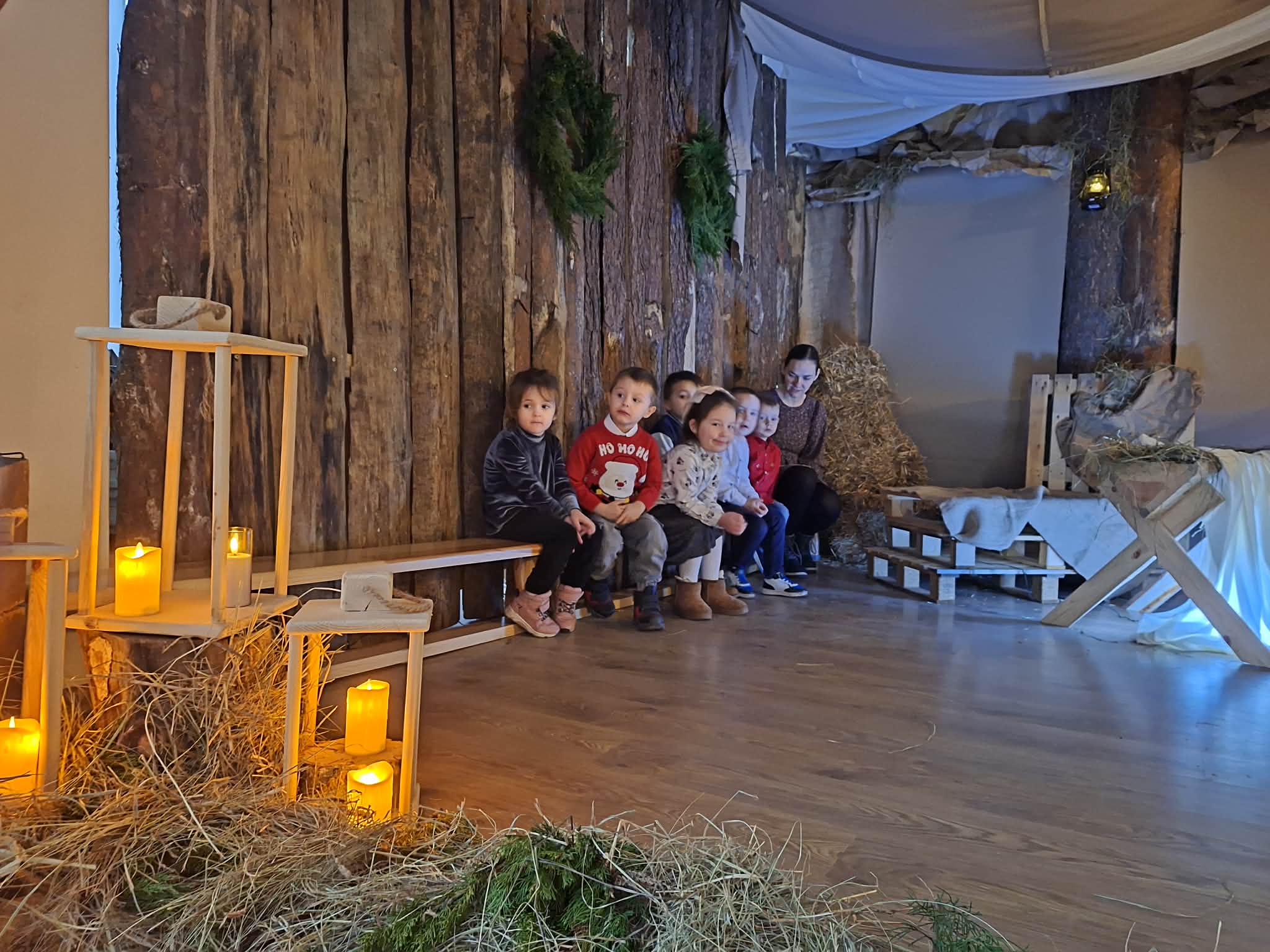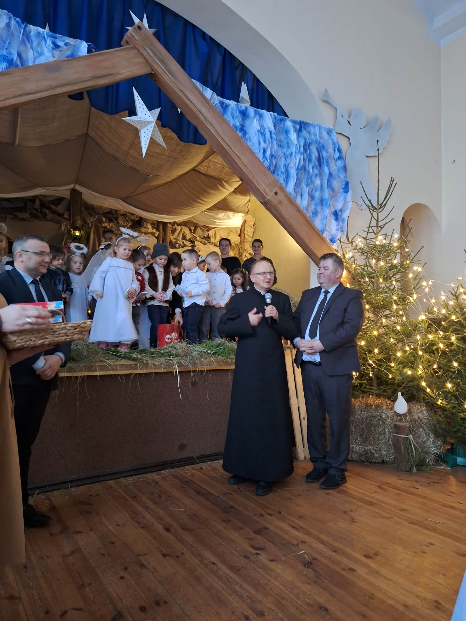 Dnia 17.12.2025r. odbyły się wyjątkowe Jasełka, podczas których dzieci z ogromnym zaangażowaniem zaprezentowały świąteczne przedstawienie. Mali artyści wprowadzili nas w bożonarodzeniowy nastrój poprzez piękne wiersze, kolędy i stroje. Po występie na dzieci czekał słodki poczęstunek, który sprawił im wiele radości. Niezwykłą atrakcją były również odwiedziny Gwiazdora, który obdarował dzieci prezentami i wywołał wiele uśmiechów. Dziękujemy za obecność i wspólne przeżywanie tych magicznych chwil.