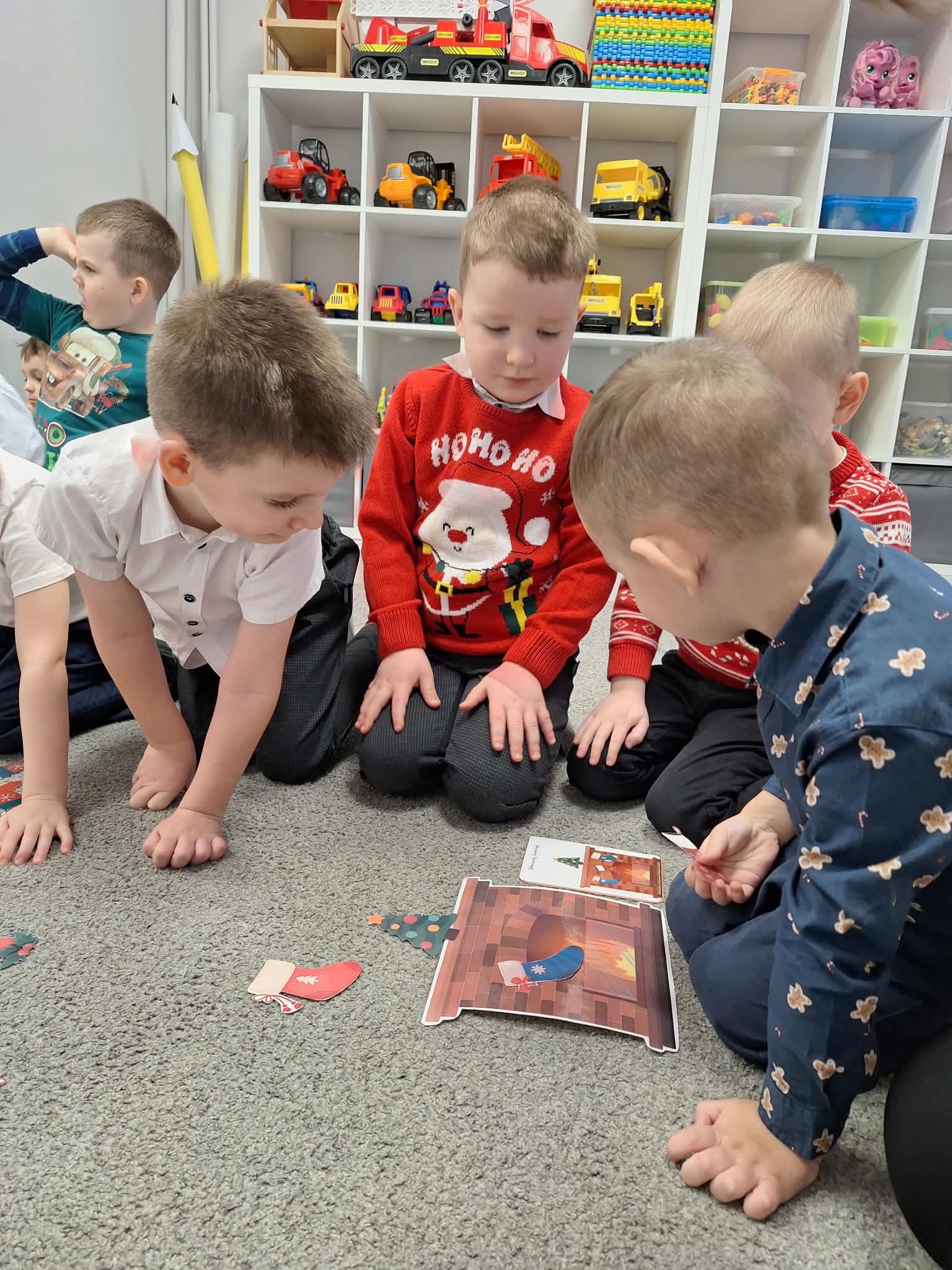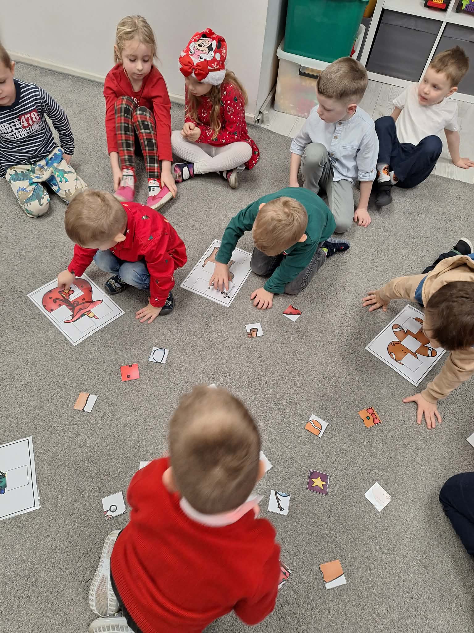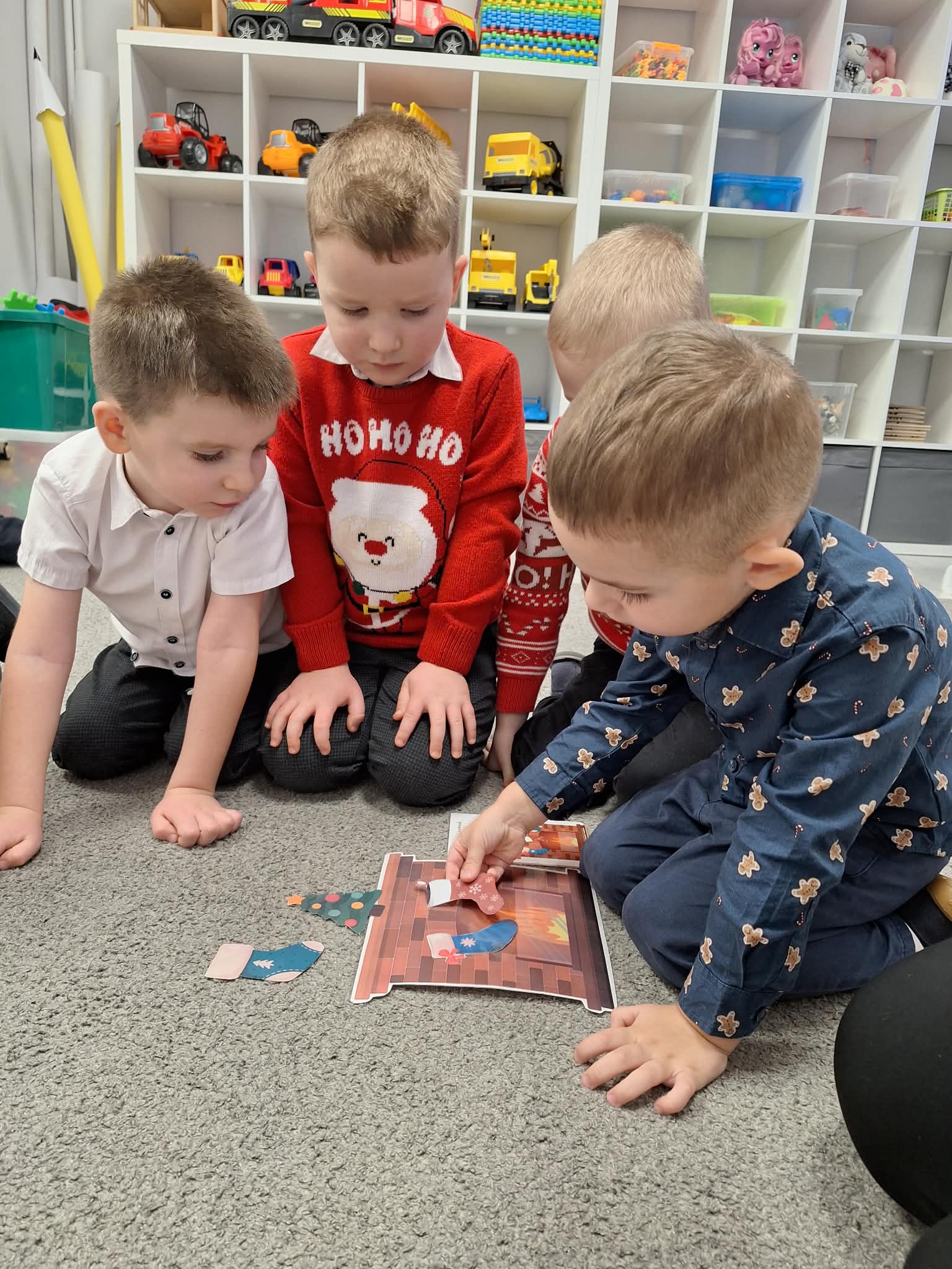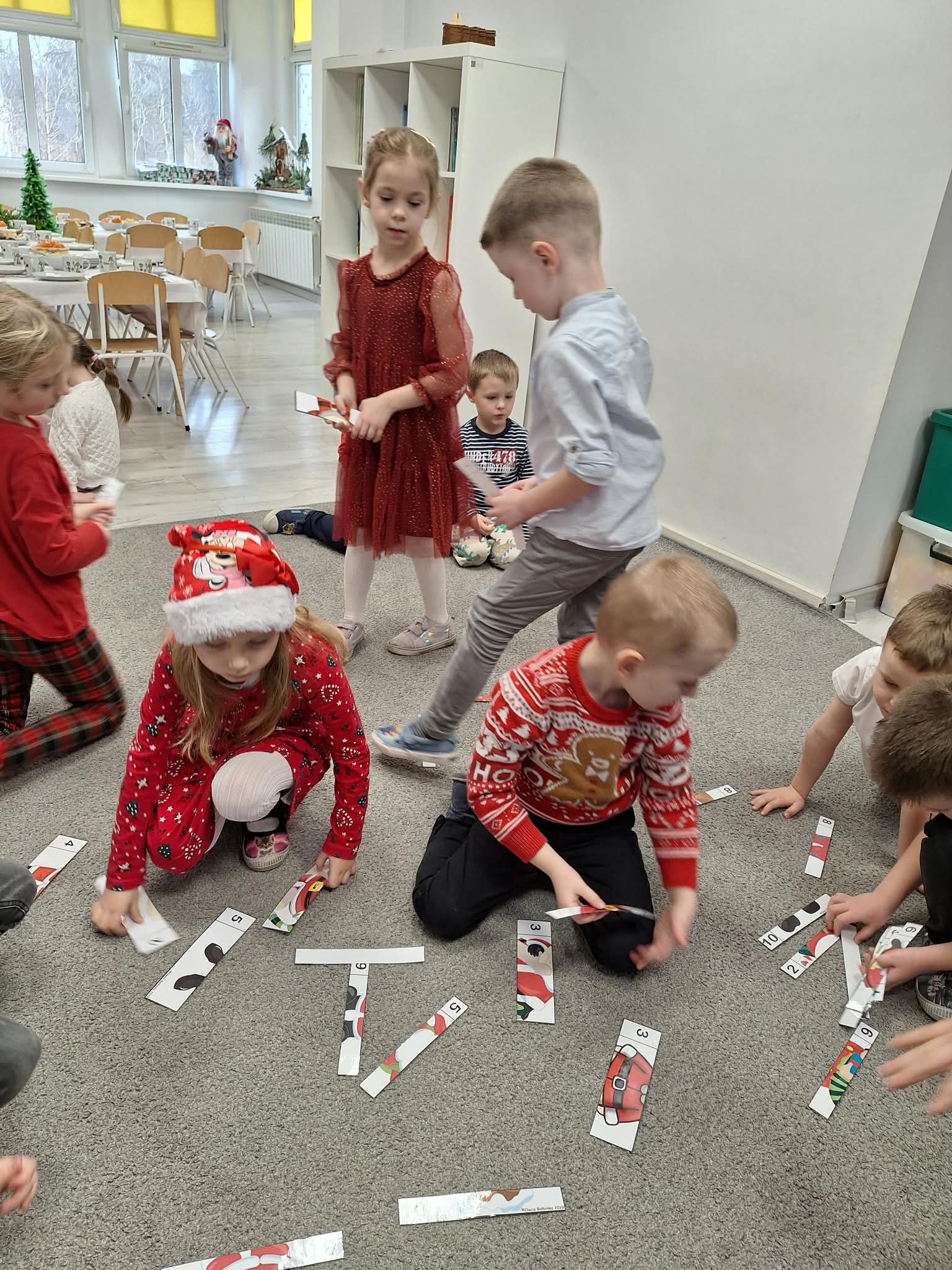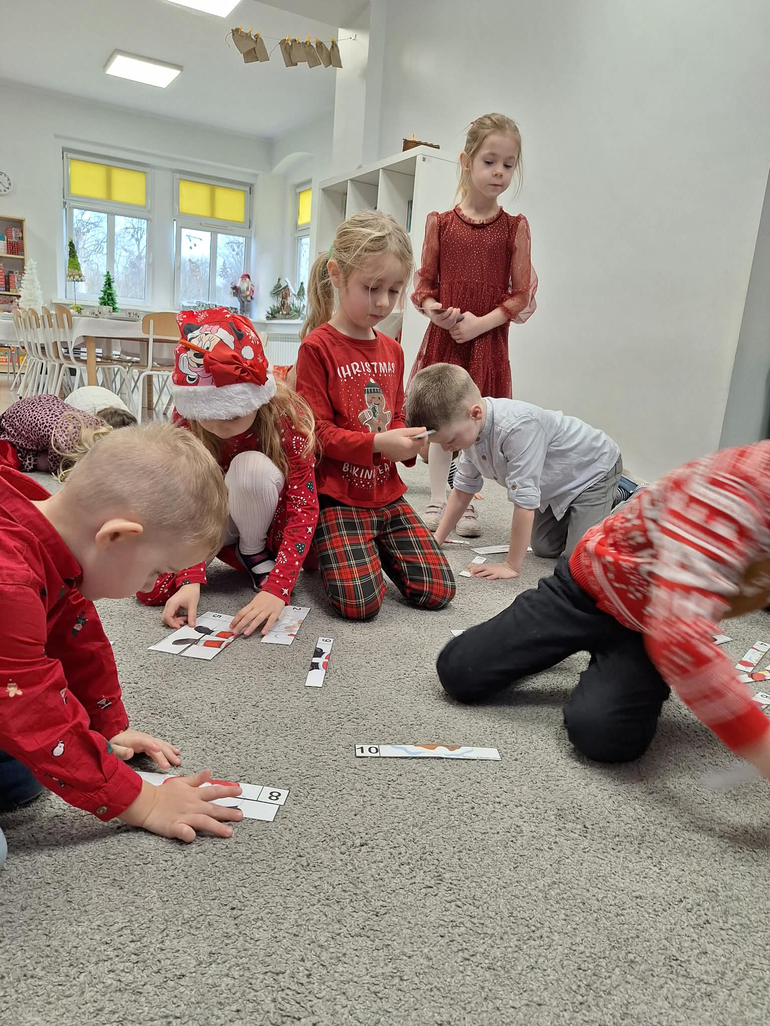 Świąteczny czas w przedszkolu to okres pełen radości i twórczej zabawy. Podczas zajęć świątecznych dzieci malują choinki, wykonują prace plastyczne oraz uczą się ubierać choinkę według podanego wzoru, ćwicząc przy tym spostrzegawczość i koncentrację. Wspólne aktywności sprzyjają rozwijaniu wyobraźni, zdolności manualnych oraz wprowadzają dzieci w magiczną atmosferę świąt.
