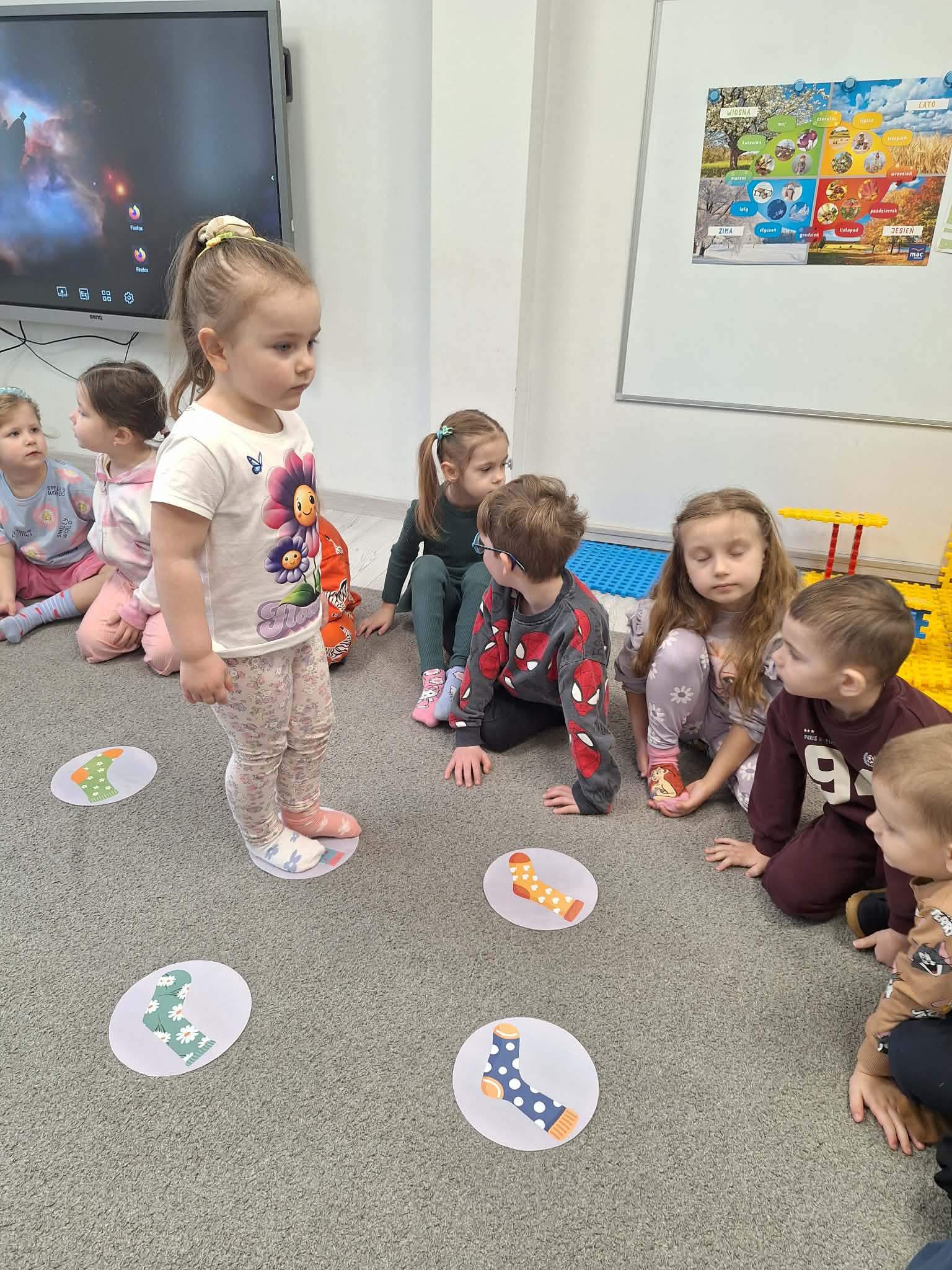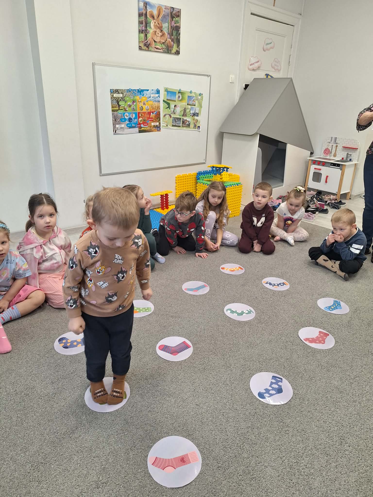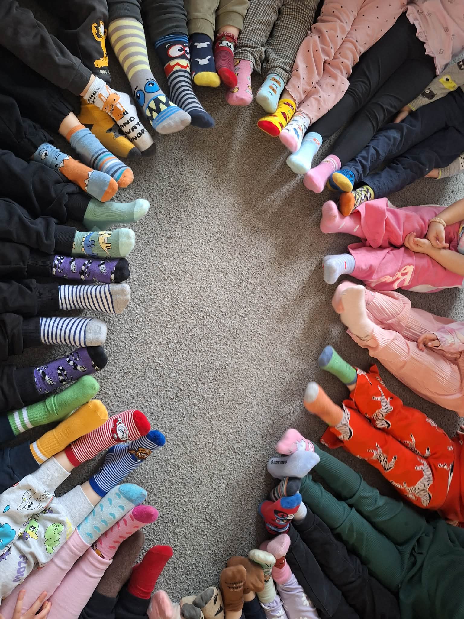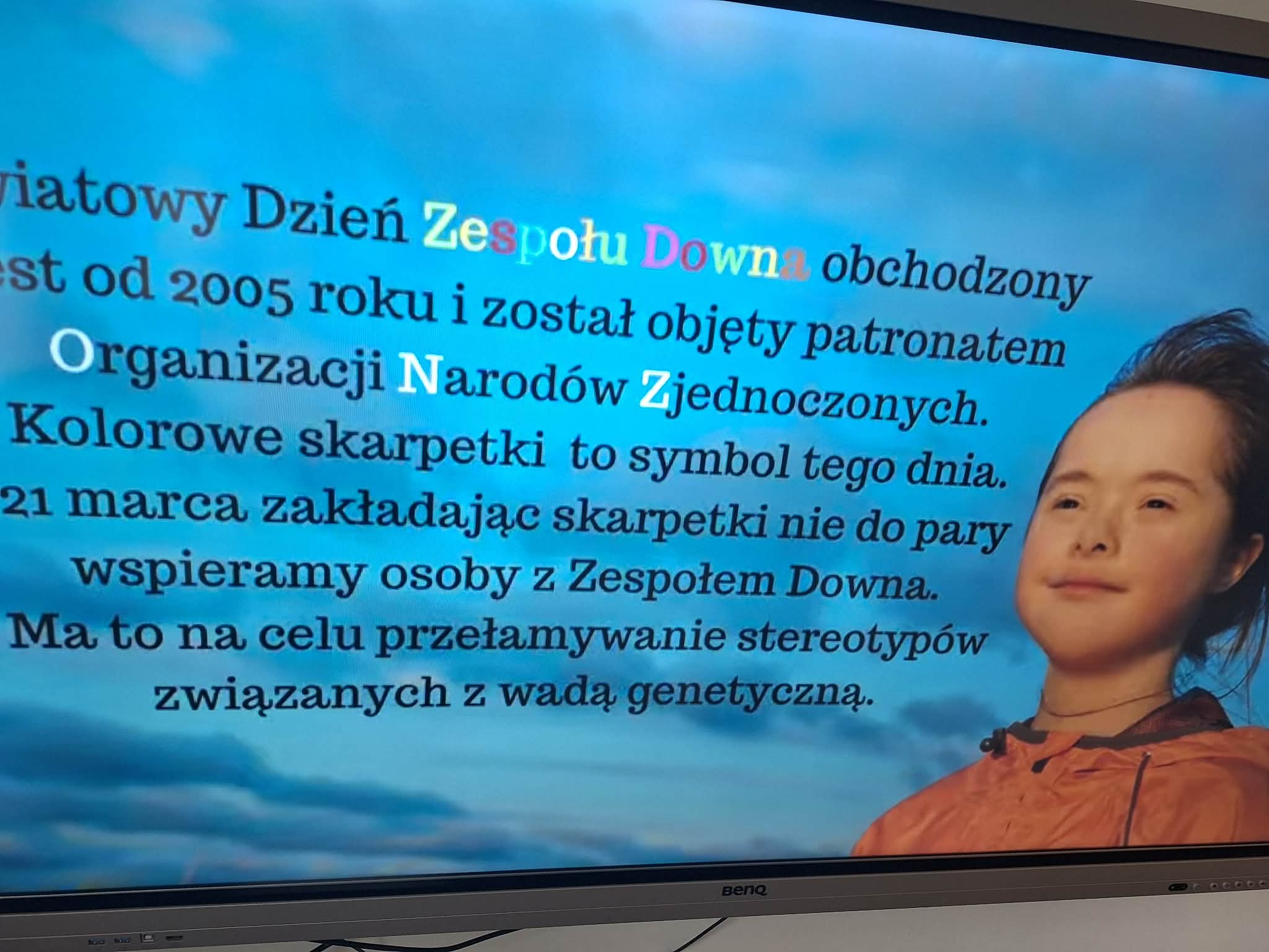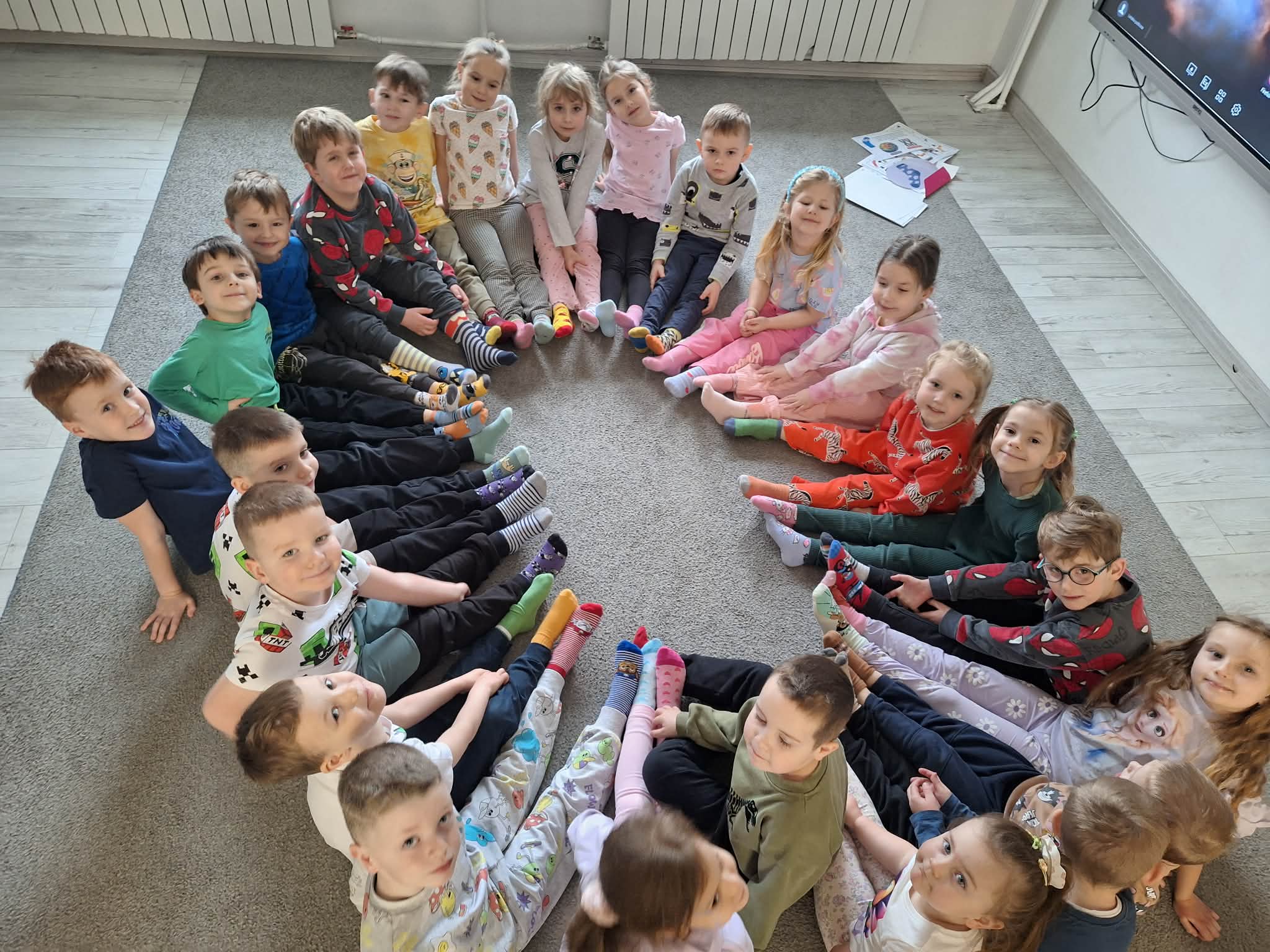 Dzisiaj obchodziliśmy również Światowy Dzień Osób z Zespołem Downa, nazywany Dniem Kolorowej Skarpetki. Dzieci założyły kolorowe, nie do pary skarpetki na znak akceptacji i szacunku dla różnorodności. Obejrzeliśmy także krótki film edukacyjny poświęcony temu ważnemu dniu.