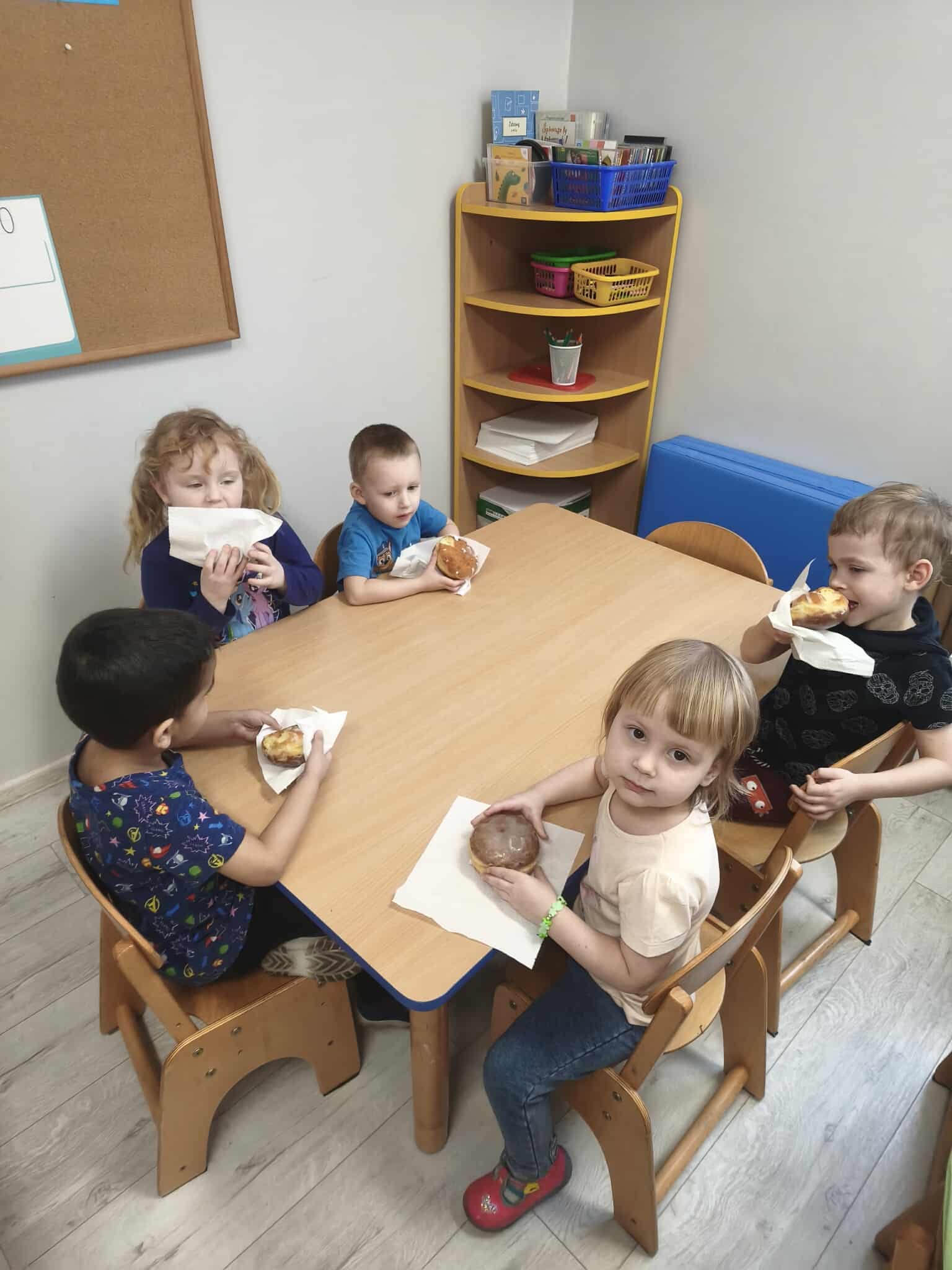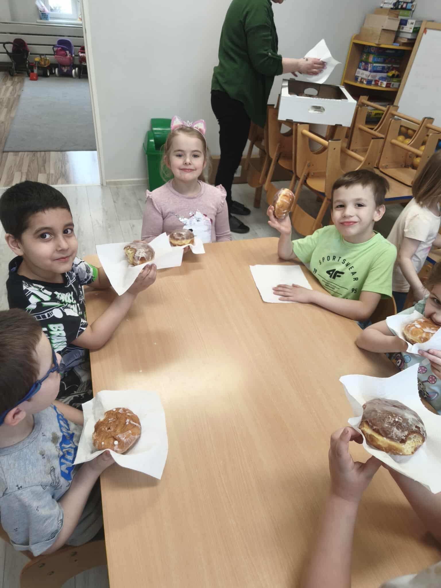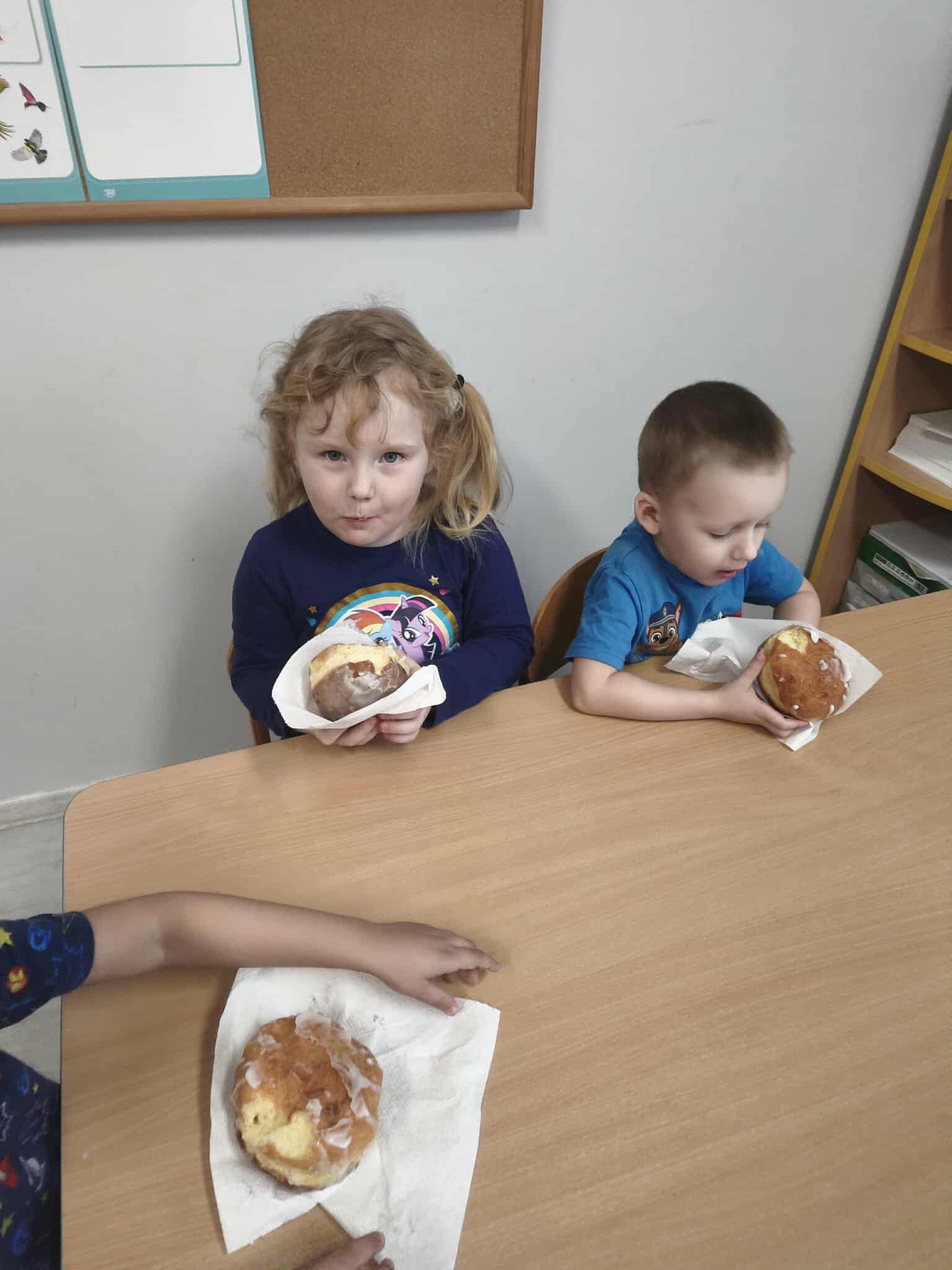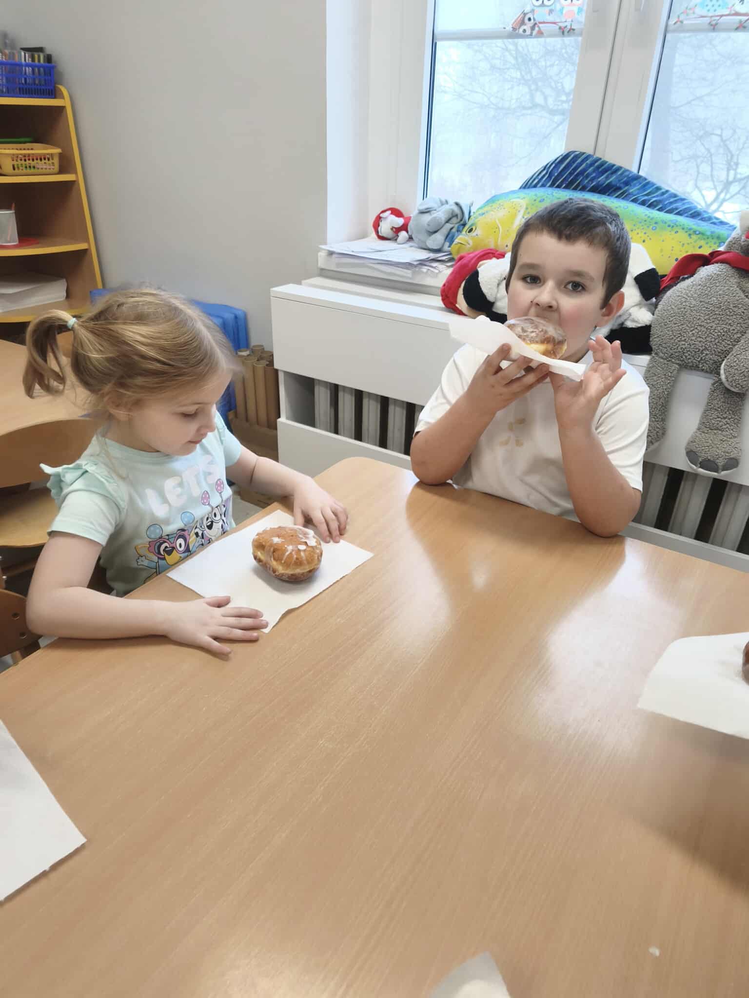 Podczas zajęć dydaktycznych poznały tradycje i obrzędy związane z tym świętem, a także wykonały pracę plastyczną - pączka. Oczywiście w tym dniu nie mogło zabraknąć słodkiego poczęstunku w postaci pączków!