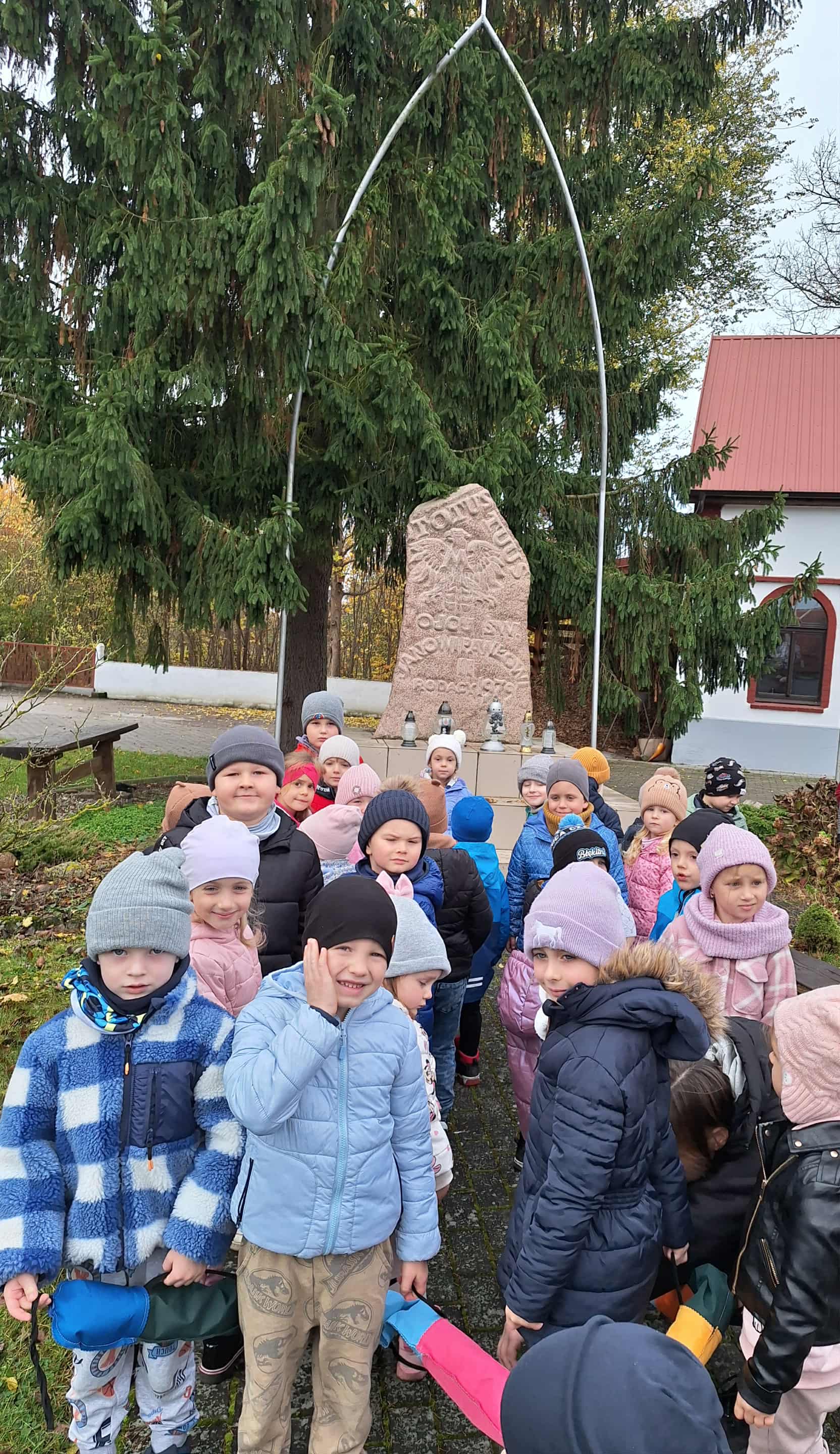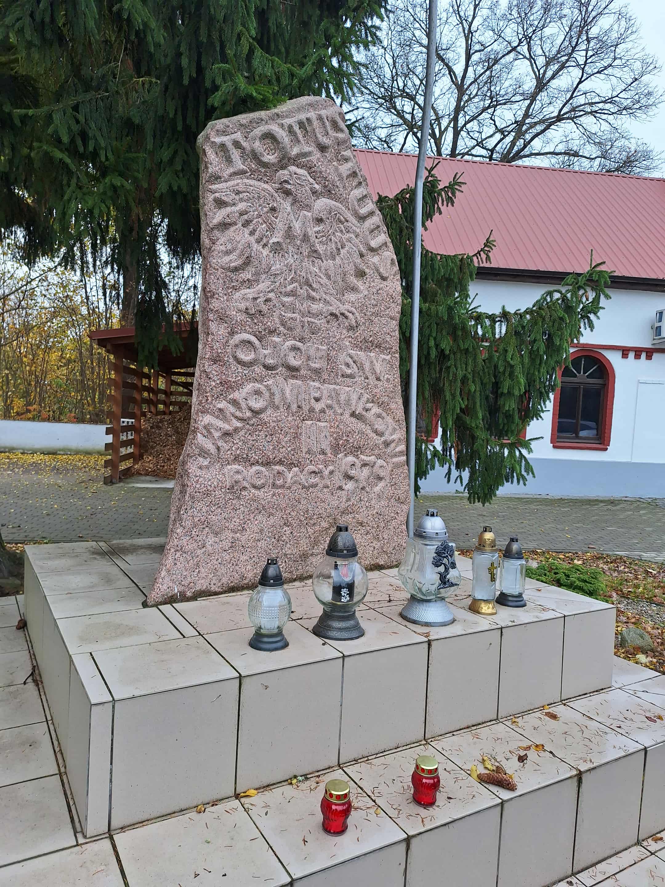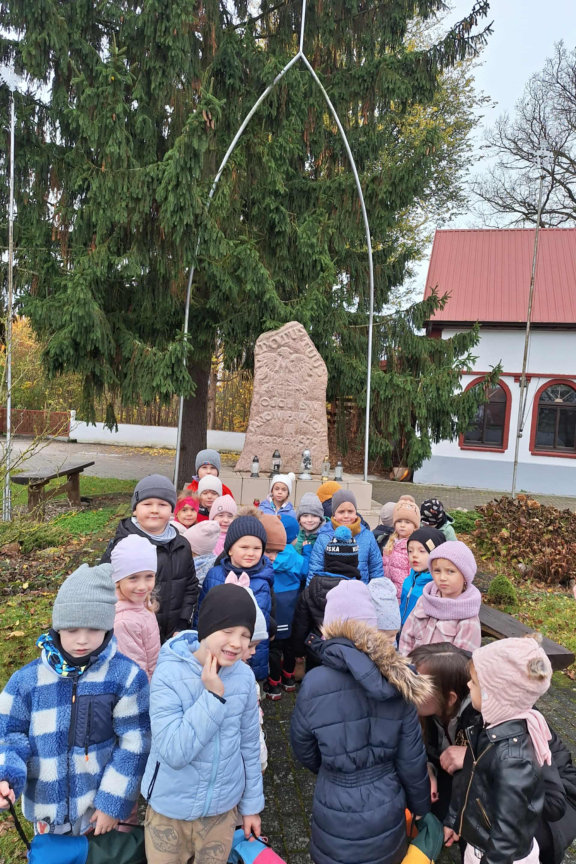 Przed Dniem Wszystkich Świętych nasze dzieci odwiedziły pomnik Jana Pawła II i zapaliło znicz. Jest to okazja by uwrażliwić młodych ludzi na potrzebę pielęgnowania pamięci o bohaterach naszej wolności i zapalić znicze na grobach osób zasłużonych i cenionych w społeczności, szczególnie tych, którzy zapisali się w historii- tej ogólnonarodowej, jak i tej lokalnej. Dlatego odwiedziliśmy pomnik Jana Pawła II przy pobliskim kościele i zapaliliśmy znicz. Pomnik ten jest lokalnym miejscem pamięci. Pamięć o bohaterach naszej ojczyzny jest wyrazem szacunku dla ich życia i dokonań.